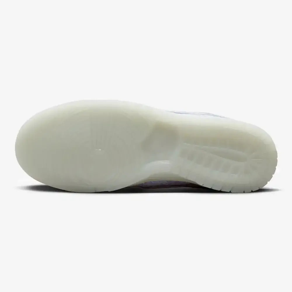 Inspired by Hiroshi Fujiwara's favorite CLOT shoe of the past two decades—the Air Force 1 x CLOT, also known as the 'White Silk' from 2018—the Dunk Low x CLOT x Fragment Design features an all-white silk-inspired upper printed with CLOT's iconic Silk Royale, set atop a matte white outsole for a clean look. The tongue, laces, and heel tab are black, resulting in the striking black-and-white colorway inspired by pandas, which Fujiwara fondly remembers from visiting Chen at the Chengdu Wildlife Sanctuary. The sockliner, meanwhile, features the CLOT20 logo, marking this special release. Each pair of Dunk Low x CLOT x Fragment Design comes with black and blue laces for style purposes.