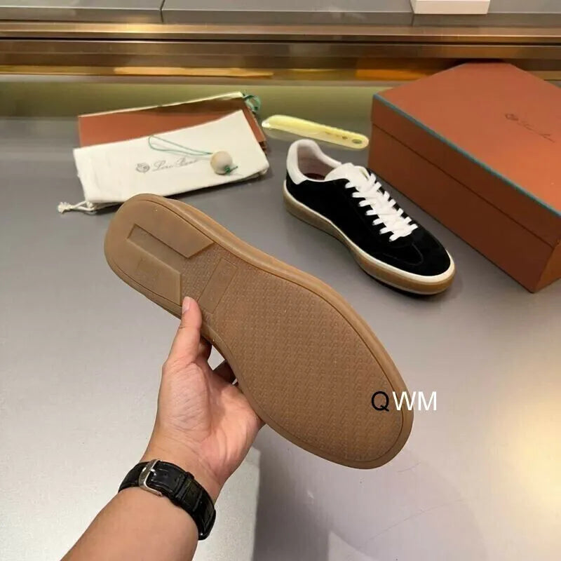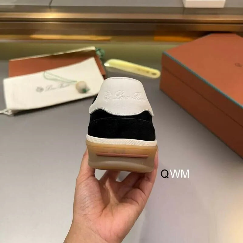 The LRP Nuages Sneakers in black and white suede offer a sleek reinterpretation of everyday luxury. Crafted in smooth black suede with a contrasting white leather heel tab and laces, this design delivers refined balance and versatility. The gum rubber sole provides traction and durability while keeping the sneaker lightweight and flexible. A timeless style that transitions effortlessly from casual outfits to elevated smart-casual looks, showcasing LRP’s mastery of understated sophistication.