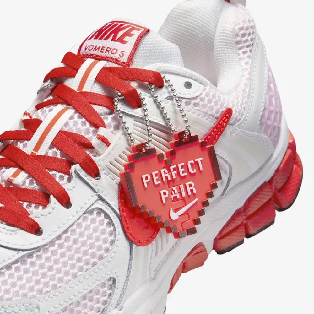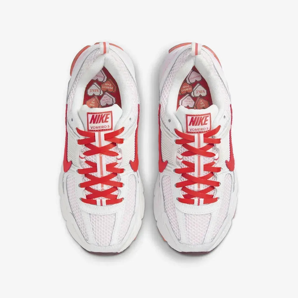 Fall in love with style and comfort in the NK Zoom Vomero 5 Valentine’s Day Edition, crafted for young sneaker lovers. This special release features a charming color palette that celebrates the spirit of the day, with a Summit White base accented by Light Crimson, Pink Foam, Dark Team Red, and Fire Red — a vibrant look that turns heads everywhere you go.