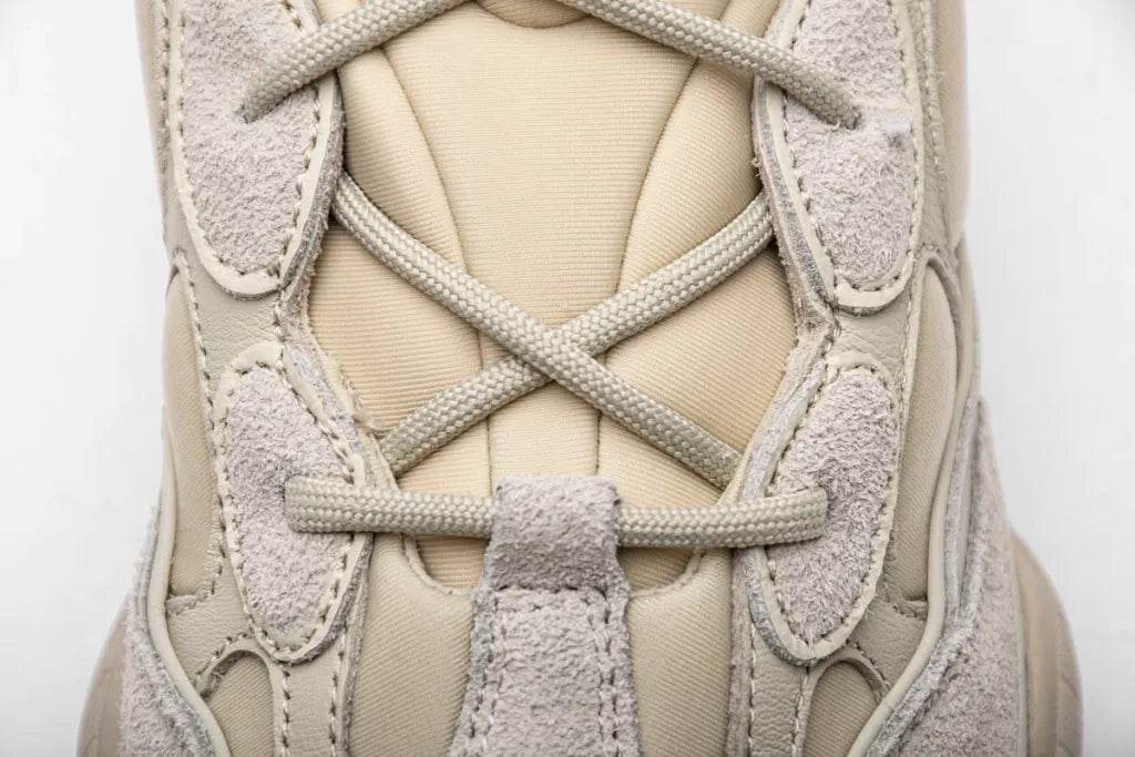 The Ad Yeezy 500 “Stone” reimagines the chunky silhouette with a sleek and cushioned design. Unlike earlier versions, this release swaps out mesh panels for a smooth neoprene base, wrapped with suede and leather overlays in soft beige tones. The result is a cleaner, more streamlined look while maintaining the layered Yeezy 500 aesthetic.