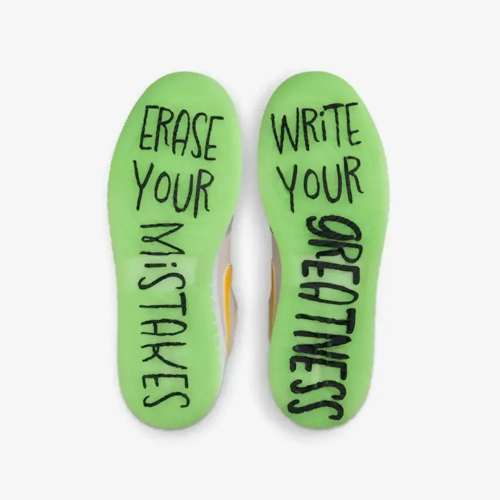 Inspired by the way Michael AJturns mistakes into lessons, the AJ“Sneaker School” celebrates growth, resilience, and creativity. Designed with vibrant accents and a motivational message on the sole, it channels the mindset that defines greatness — learning through every step.