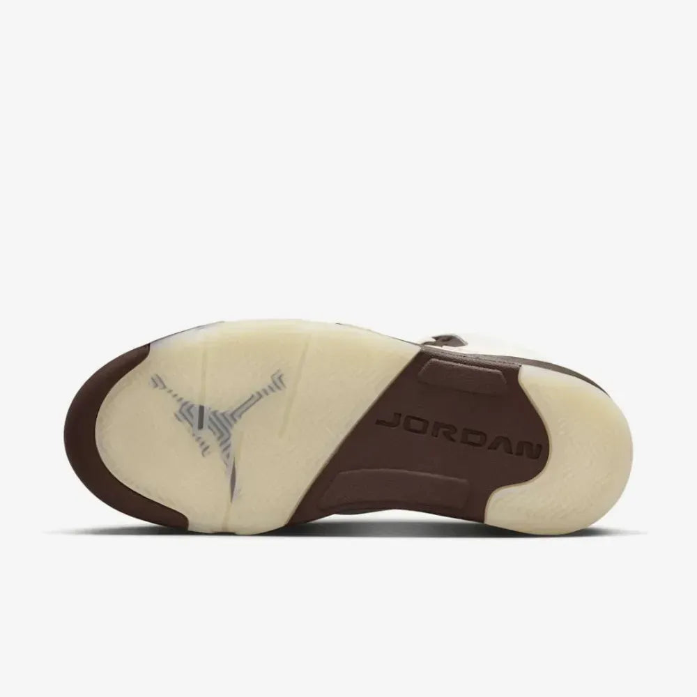 Step into the extraordinary with the AJ 5“Golden Ticket”, a bold reimagining of MJ’s iconic 1990 cloud-chasing classic. The design features a Sail leather upper paired with Earth-toned accents and a lustrous Metallic Gold tongue, symbolizing the pursuit of greatness. A rich chocolate midsole anchors the look, while signature AJdetails — including the translucent outsole and sculpted shark-tooth pattern — bring a timeless edge. Crafted for those who dare to dream big, this pair is your ticket to something truly unforgettable.
