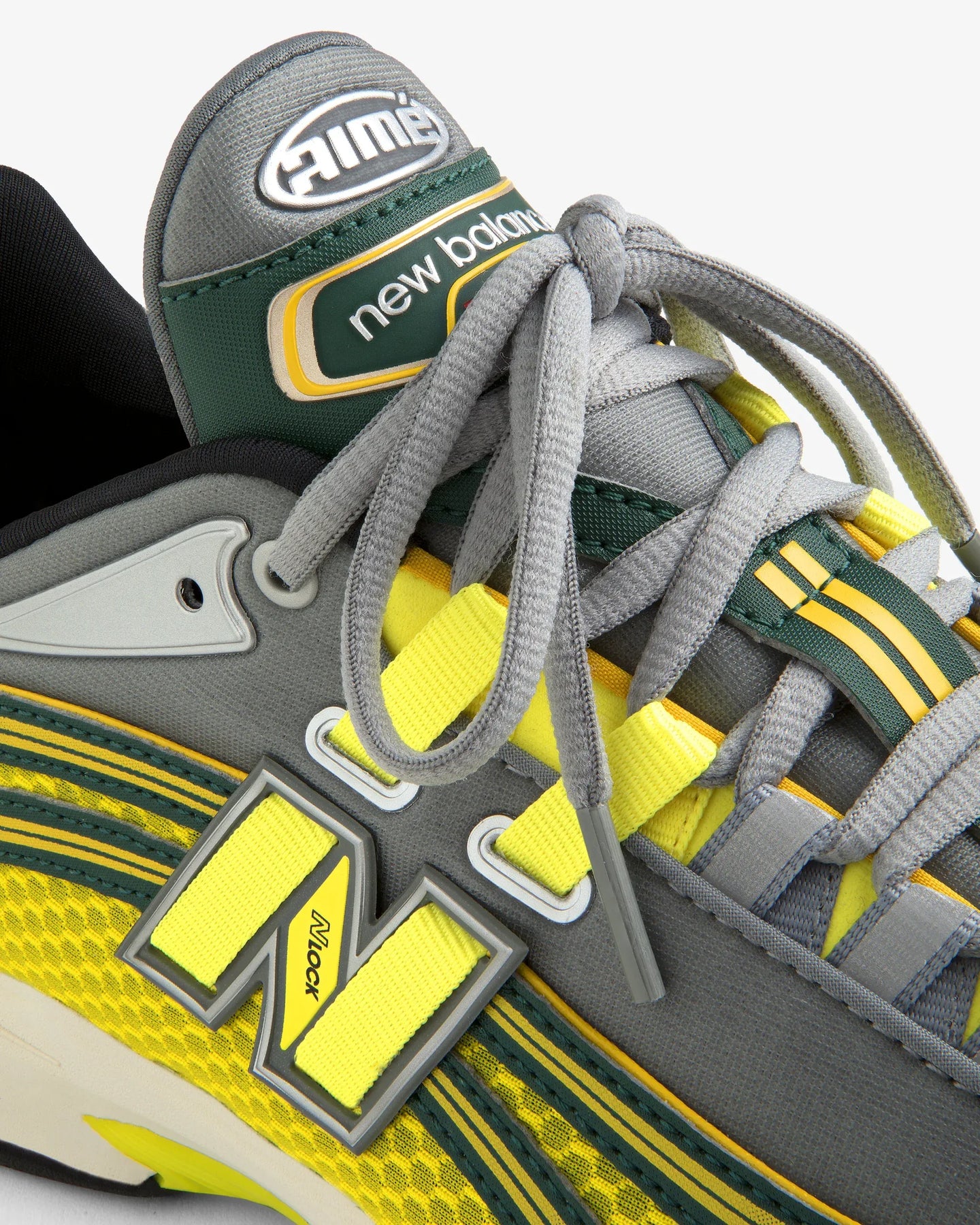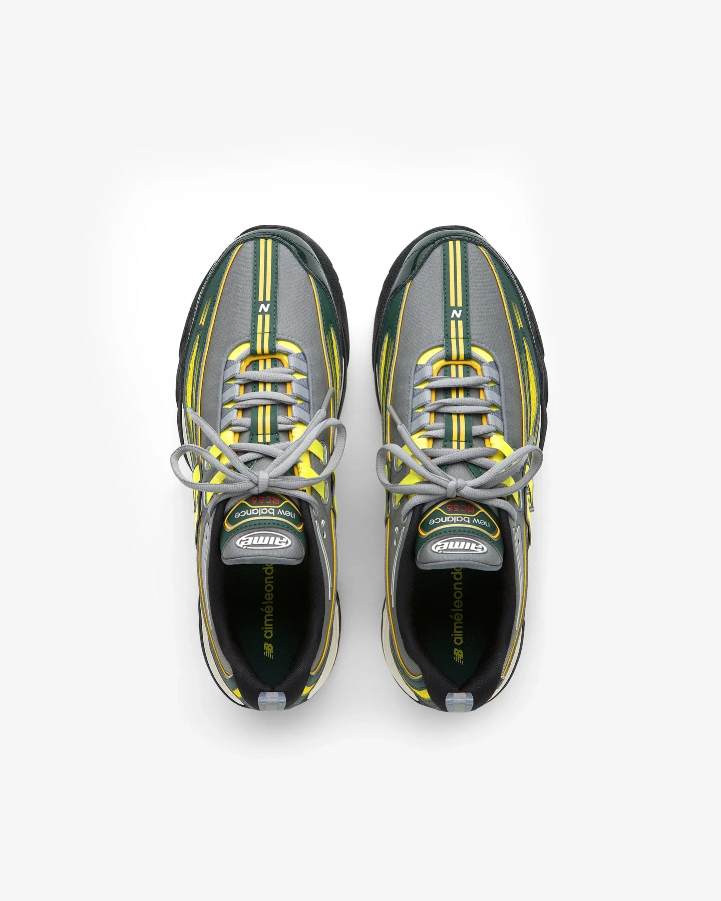 The ALD x NB RC56 fuses modern design with vintage running heritage. This colorway blends deep green, grey, and vibrant volt tones across a layered mesh and synthetic upper, highlighted by reflective accents and dual “N” branding. The sculpted midsole delivers lightweight comfort, while the rubber outsole ensures traction and durability. A sharp expression of ALD’s refined streetwear aesthetic, this RC56 is where retro performance meets contemporary luxury.